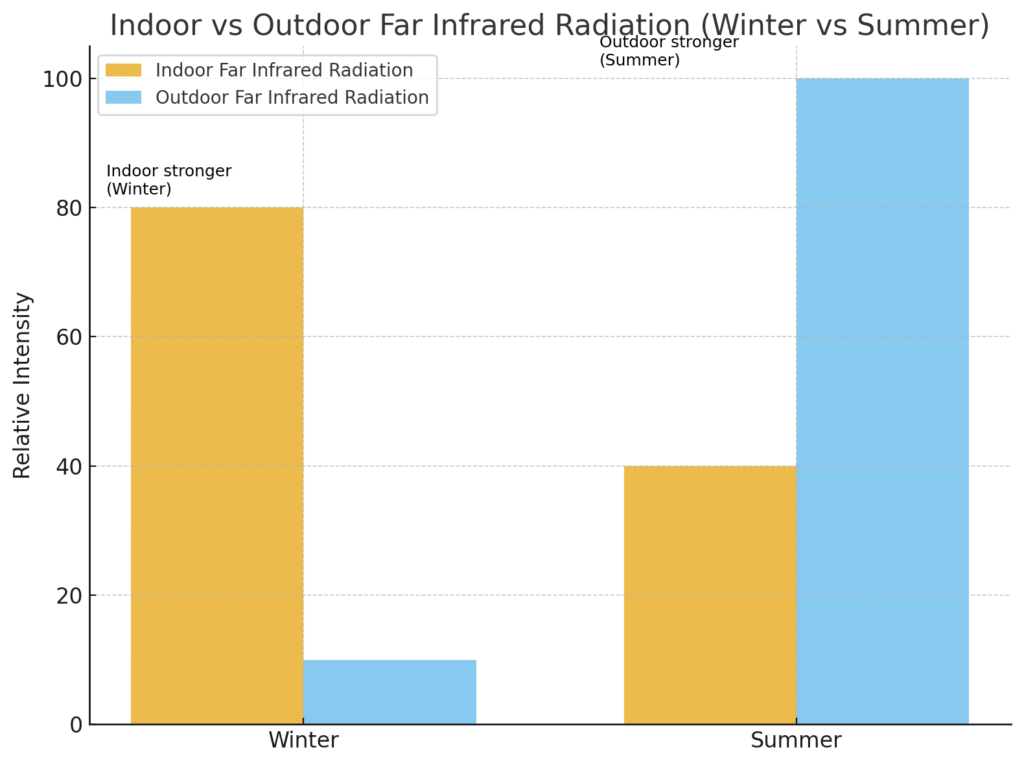 Indoor far infrared radiation is mainly produced by heating systems, the human body, and household appliances. In winter, outdoor temperatures are much lower than indoors, which means outdoor infrared heat radiation is extremely weak—almost negligible compared with indoor far infrared radiation. During this season, the key energy saving strategy is to prevent indoor heat loss.
