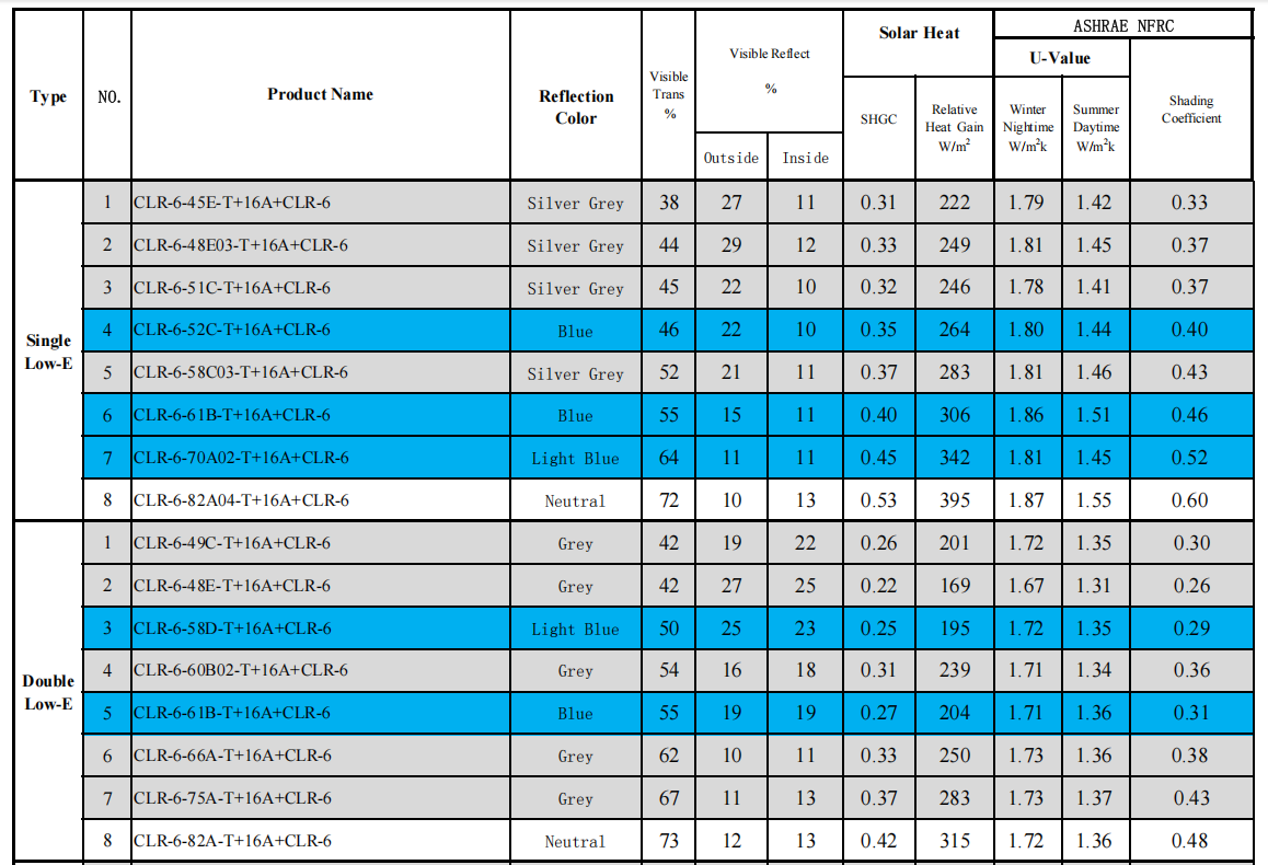 | Solar Heat Gain Coefficient (SHGC) | ~0.28–0.35 (depending on Low E type) |